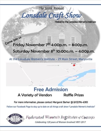 The Lonsdale Women’s Institute provides fun and friendship at monthly meetings and activities. New members welcomed. Meetings are the 1st Wednesday of each month at 7:00 p.m. Contact: Carmel Bell 613-396-5466